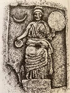 As the primordial symbol of rhythm, the moon stood at the center of an intricate web of meaning tying many different phenomena–water, blood, women, vegetation, fertility, death, rebirth and rhythm. All these symbols were embodied not only in the moon in the heavens but also in the earthbound Great Mother. That is why, in many traditions, the moon is represented as a goddess playing on her moon-shaped frame drum, spinning and weaving the rhythm of human lives.”
