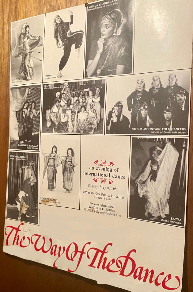 I visited the Manhattan studio whenever I was in New Jersey visiting family and then I decided it was time to host Morocco in Fort Collins! (By this time I had relocated north from Boulder to Fort Collins). I cannot recall the date of the first time I hosted her but it was a resounding success with attendees from throughout Colorado, Wyoming, New Mexico and Arizona! It was grand and we agreed she needed to return to teach us more, complete with watching her Super8 recordings of the Marrakesh Folk Festival and more! In May 1983 I hosted her in Colorado a second time for a 3-day program of classes that culminated in a grand celebration of dance featuring the Storm Mountain Folk dancers among many others and spotlighting the Marvelous Ms. Morocco!