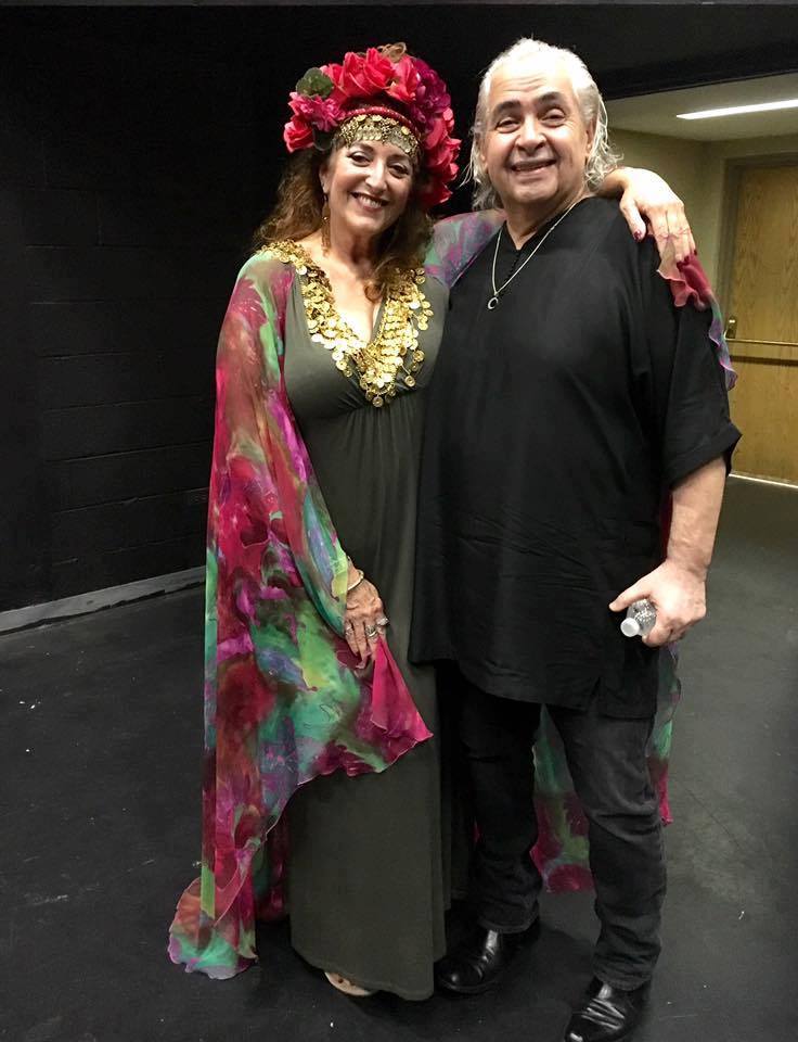 July 2016 :: To a certain set of devotees, Hossam Ramzy (1953 –2019) was known as the very essence of world percussion. Peter Gabriel, Robert Plant, Jimmy Page, Chick Corea, Joe Bonamassa, and Shakira represent a fraction of the stars this renowned darbuka (Egyptian tabla) player worked with in his storied career. With the strains that emanate from Saudi Bedouin camps and Egyptian baladi—the urban folk and dance music that is his native tongue—Ramzy fuses sounds from around the world in performances that are expansive and earthy, overflowing with mesmerizing rhythms. An international cohort of like-minded musicians backs him for an intoxicating evening. Tahya speaks with world-renowned Egyptian percussionist Hossam Ramzy about his Fall 2016 concert at Lafayette College’s Williams Center f/t Arts . Ali Almasi also visited the show to introduces listeners to music from his native Tabriz. (Photo to right taken back stage at the performance at Lafayette College in which Maestro Ramzy invited Tahya to perform with this ensemble.)
