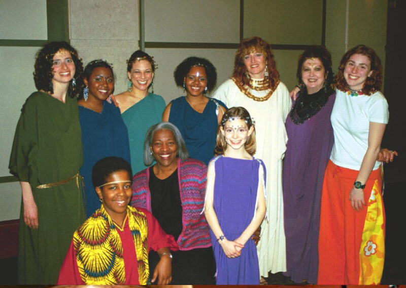 The production also featured a wonderful ethereal soundscape provided by Ben Iobst playing his collection of Tibetan singing bowls, gongs, metal chimes and tingsha. Sun Lee opened the ceremony with beautiful renderings on her violin, Asa Craig rang the opening bell, Liz Marsh offered the opening dialogue, Katina Columbus designed the costumes, I contributed choreography and Gloriel provided exquisite beaded accessories for the “Sisters.”